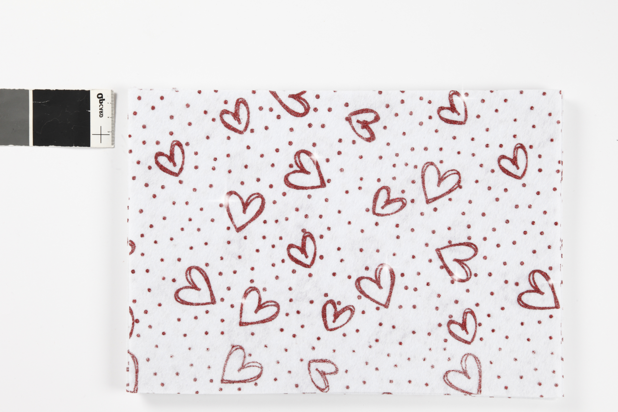 Polyester-Bastelfilz, A4 21×30 cm, Stärke: 1 mm, Weiß, Herzen und Punkte aus rotem Glitter