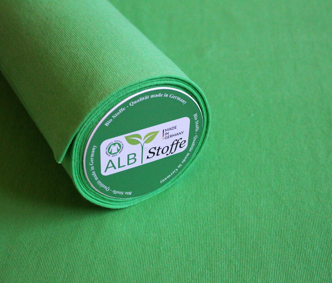 95% Bio-Baumwolle, 5% Elasthan, Breite: 35 x 2cm Schlauch, 285g/m²