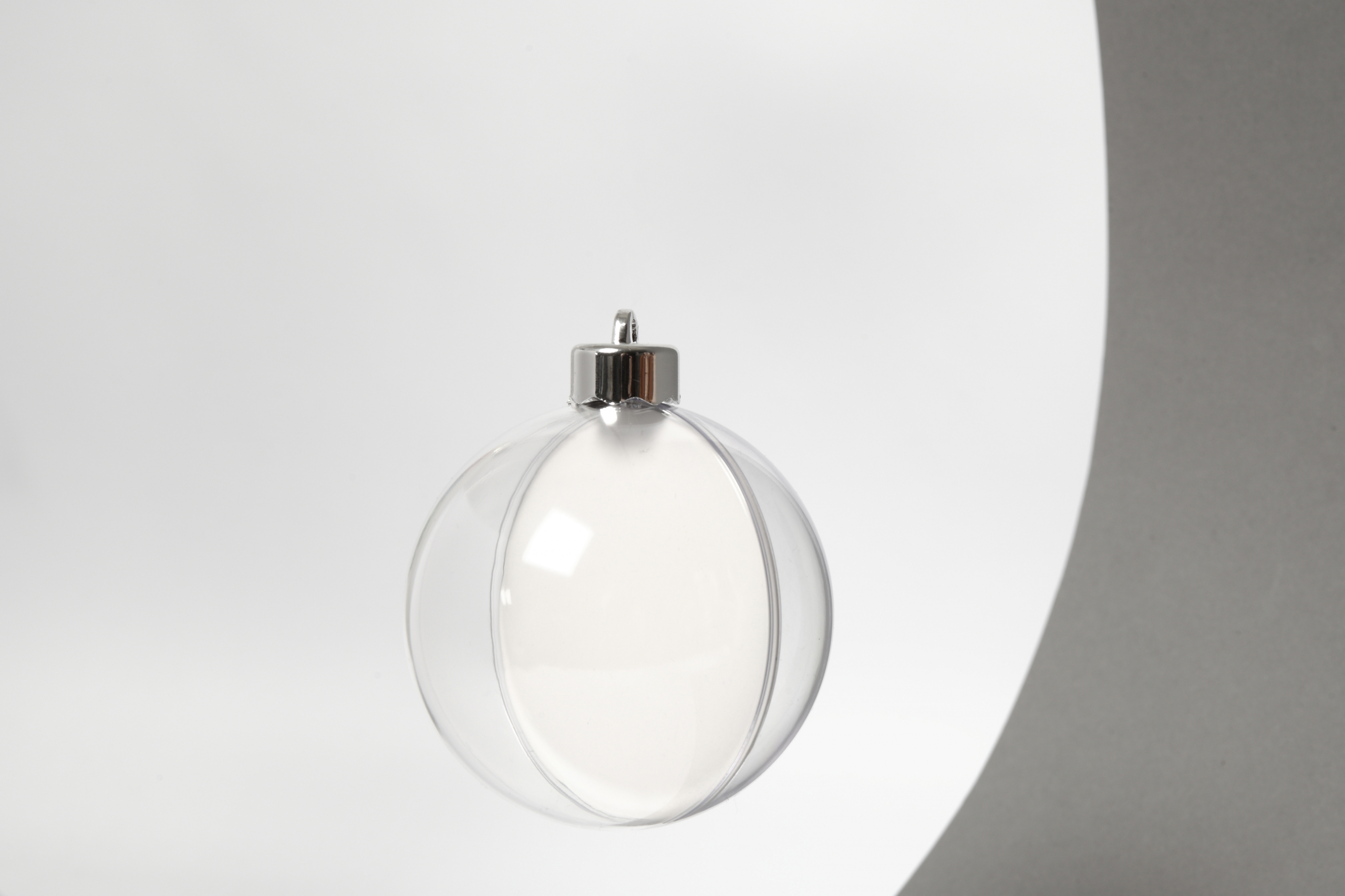 Deko-Kugeln, D: 8 cm, 5 Stück teilbar. Zweiteilige Kugel aus Acryl zum Aufhängen – geeignet zum Bemalen mit Farbe oder zum Befüllen mit Dekomaterial oder Sammelstücken. Die Kugel enthält eine kleine Kartonscheibe zum Verzieren/Bekleben.