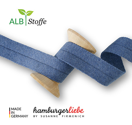 Schrägband, Breite 20 mm gefaltet. . Material:t100% Bio-Baumwolle aus kontrolliert biologischem Anbau (kbA). Veredelung:tsanforisiert. Geeignet zum Einfassen und Verzieren von Bekleidung, Accessoires, Bettwäsche und Kissen.