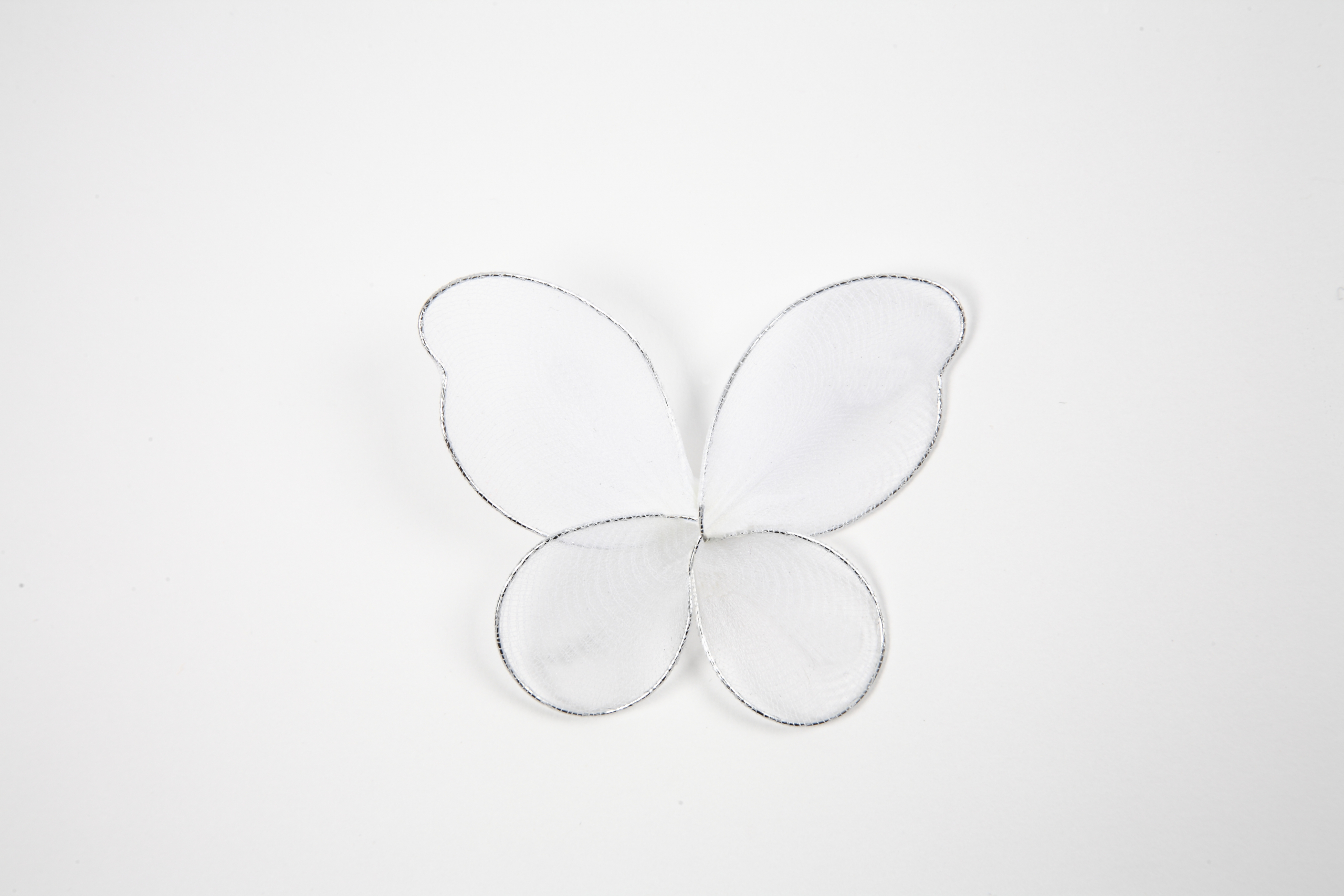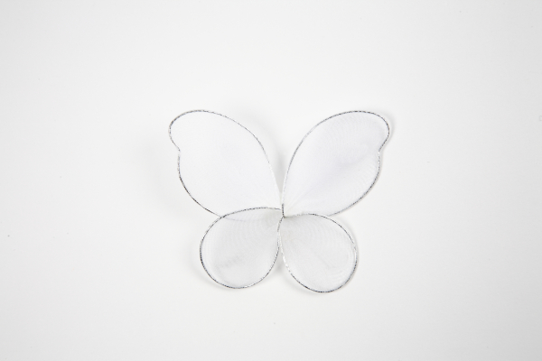 Netzflügel, Größe 5,5×4,5 cm, 30Stck.. Zarte Flügel aus Metalldraht, bezogen mit Nylontüll – zum Bemalen und Verzieren mit Textilfarbe, Seidenfarbe etc.