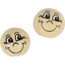 Gesicht Smiley, D: 12 mm, Holz, 20 Stck. Holzperlen mit halbgebohrtem Loch – mit bedrucktem Gesicht – hautfarben.