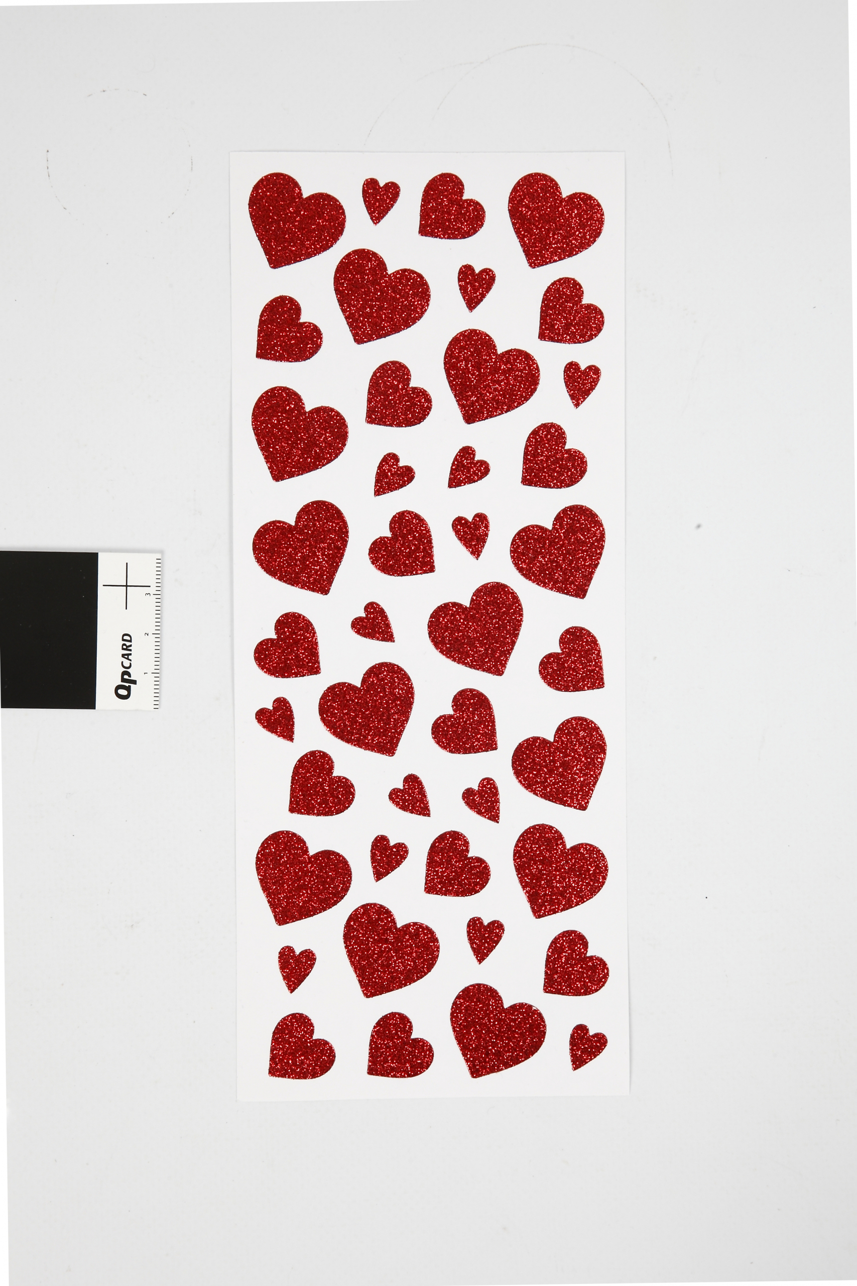 Sticker mit Herzen, Blatt 10×24 cm, ca. 84 Stck, Rot, Herzen, 2Bl.. Selbstklebende Sticker aus spezieller Glitzerfolie.. Blatt 10×24 cm, ca. 84 Stck