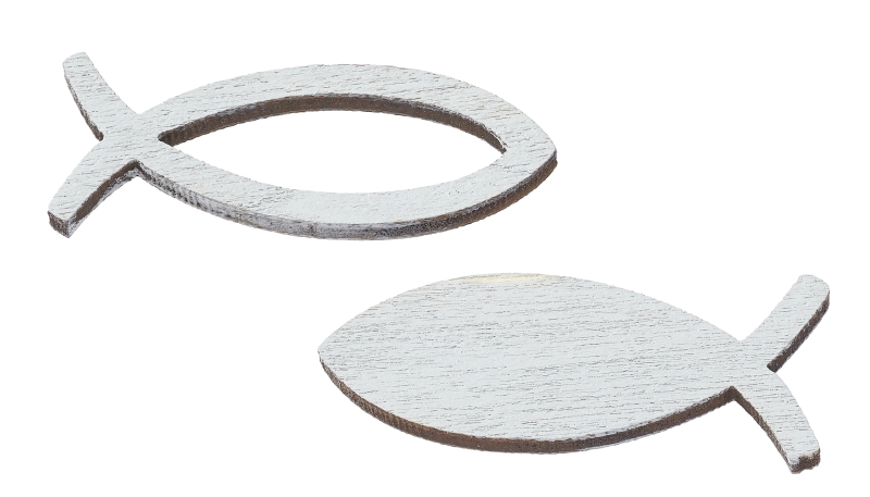 Holzstreuteil Fisch 3,5 cm, 2-fach sort., Box à 16 St., grau