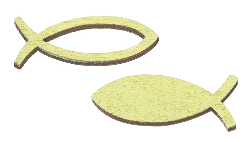 Holzstreuteil Fisch 3,5 cm, 2-fach sort., Box à 16 St., hellgrün