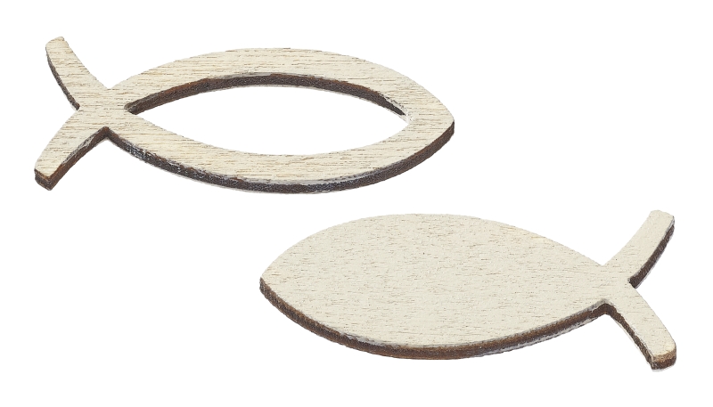 Holzstreuteil Fisch 3,5 cm, 2-fach sort., Box à 16 St., natur