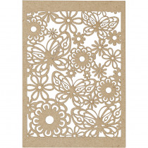 Karton mit feinteiligem, mit Laser gestanztem Spitzenmuster. Aufgrund der Herstellungsmethode können dunkle Schatten auftreten