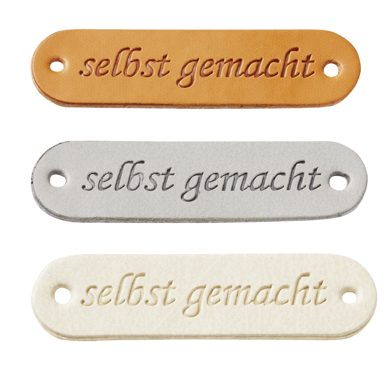 Kunstleder Label selbst gemacht, ca. 45 x 12 mm, braun, Btl. à 4 St.