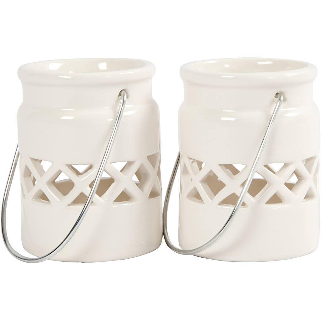 Laterne, D: 7,5 cm. Bauchig – Klarglas – mit Aufhängebügel aus Metall.