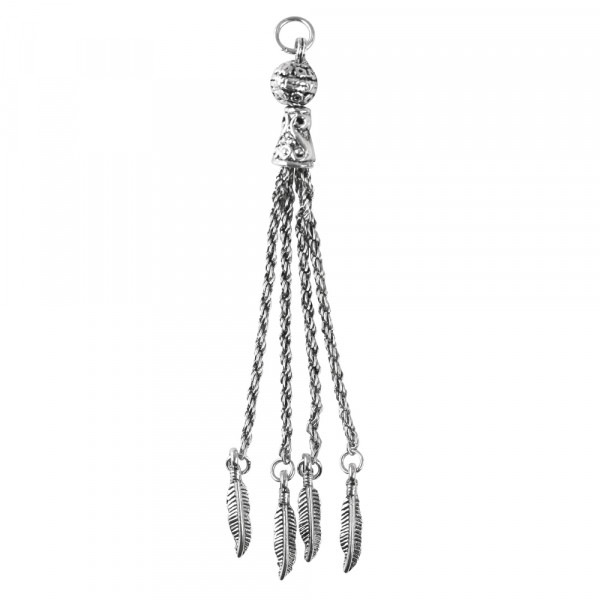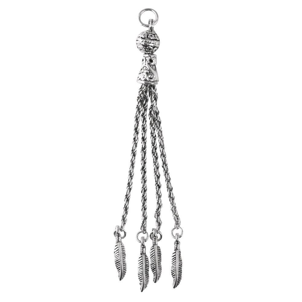 Sie befinden sich hier: Startseite / Shop / Schmuckbasteln / Anhänger / Metall- Quaste m. Federn, 10cm