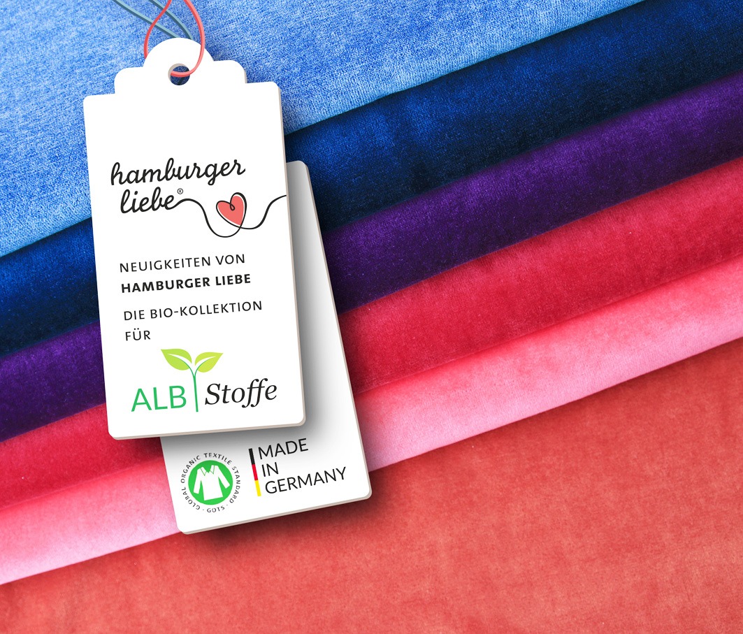 Organic Nicki, Farbe A33 jeansblau . 90% kbA Bio-Baumwolle, 10% recyceltes Polyester aus Meeresabfällen. Breite: 155 cm, Gewicht: 310g/m²
