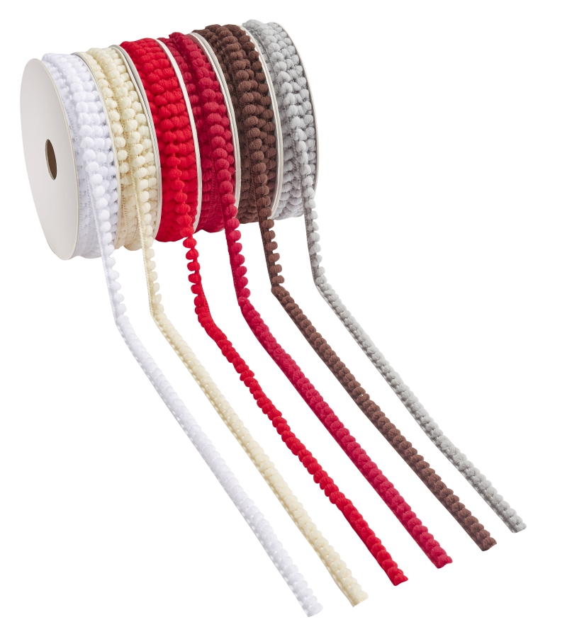 Pompon-Borte 10 mm, grau, Rol. à 10 m