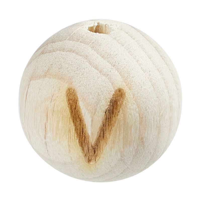 Schnulli-Buchstaben-Kugel 15 mm, V , Buche natur