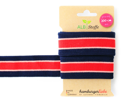 Die Hamburger Liebe STRIPE ME Jacquard- und Streifen Bänder in XXL – 200cm Länge! 95% Bio BW | 1% EL | 4% Lurex. Breite: 200 cm | Höhe: 3,5cm. Gewicht: 510g/m²