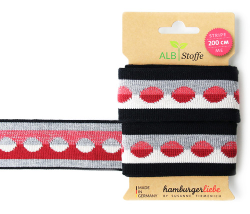 Die Hamburger Liebe STRIPE ME Jacquard- und Streifen Bänder in XXL – 200cm Länge! 99% Bio BW | 1% EL. Breite: 200 cm | Höhe: 3,5cm. Gewicht: 510g/m²